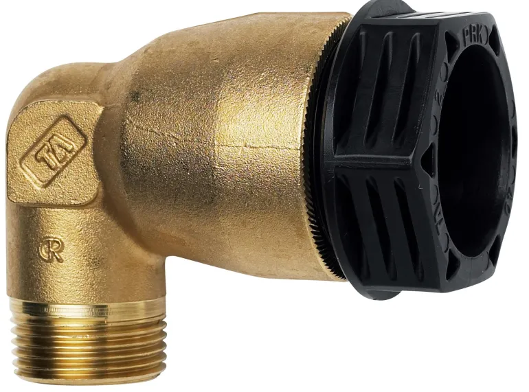 90 ° kulmaliitin polyeteeniputkille PEL, PEH ja PEM, PN 6.3 ja PN 10, standardin SS 3362 mukaan. PVC -putkille, joissa on erikoisruuvi ja kartio.