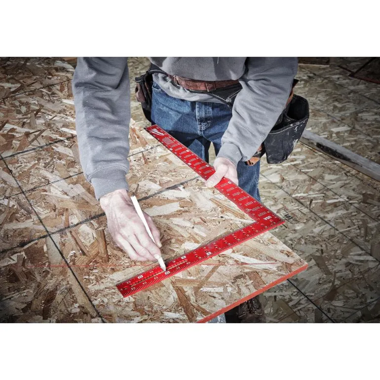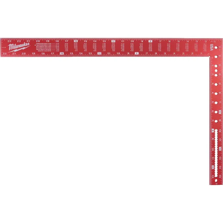 Tuumamitoitettu 16 x 24″ kulmamitta, jossa vahvistettu runko, laseretsatut merkinnät luettavuuden parantamiseksi ja tarkat lovet helppoja merkintöjä varten. Vakiomuunnostaulukko.