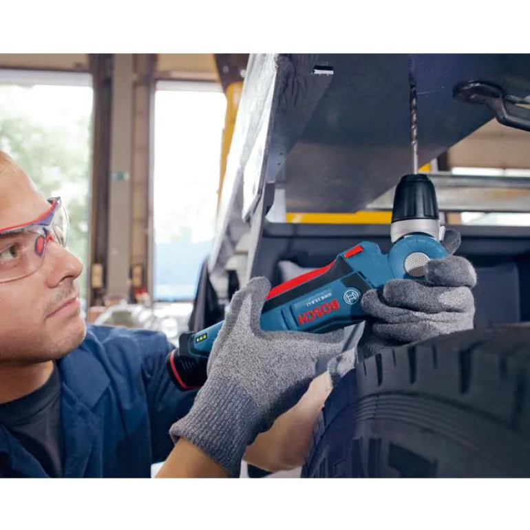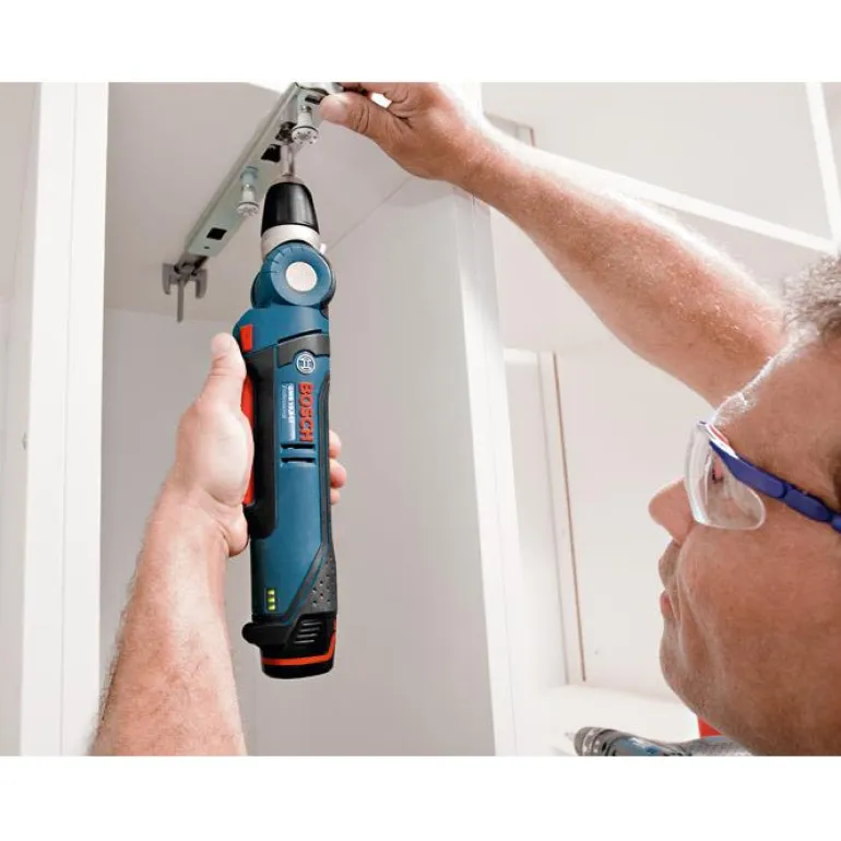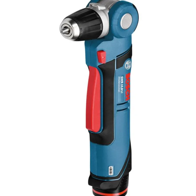 Kulmaporakone (10,8 V). Viisiasentoisen pään ja kapean rakenteen ansiosta sillä pääsee myös ahtaisiin tiloihin.