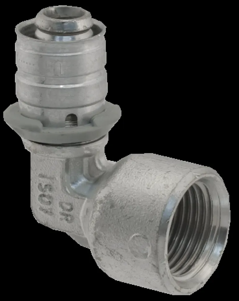 Kulmapuristusliitin, jossa kulma 90° ja sisäkierre, koot 20×15 ja 20×20 mm. Valmistettu sinkkikadon kestävästä messingistä, puristusholkki alumiinia. Ei edellytä putken jäysteen poistamista ennen liittimen asentamista putkeen.