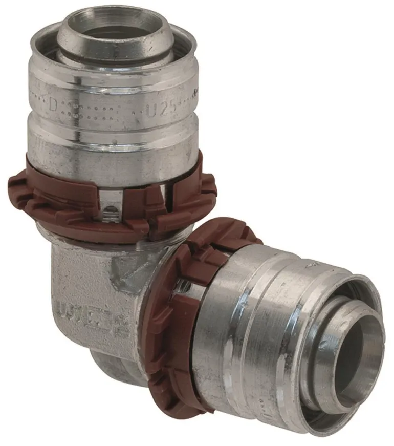 Kulmapuristusliitin, koot 40×40 mm ja 50×50 mm, taivutuskulma 90° ja 2 x puristusholkki. Valmistettu tinatusta messingistä, holkki ruostumatonta terästä.