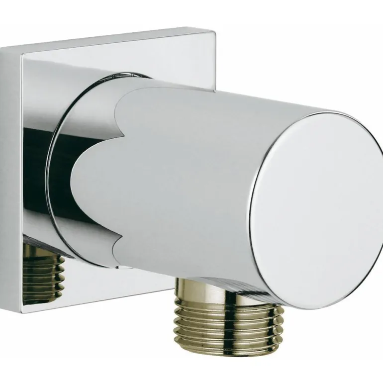 Takaiskuventtiili GROHE StarLight -kromipinnalla takaisinvirtauksen estämiseksi. Ulkokierre ja neliön muotoinen peitelevy.