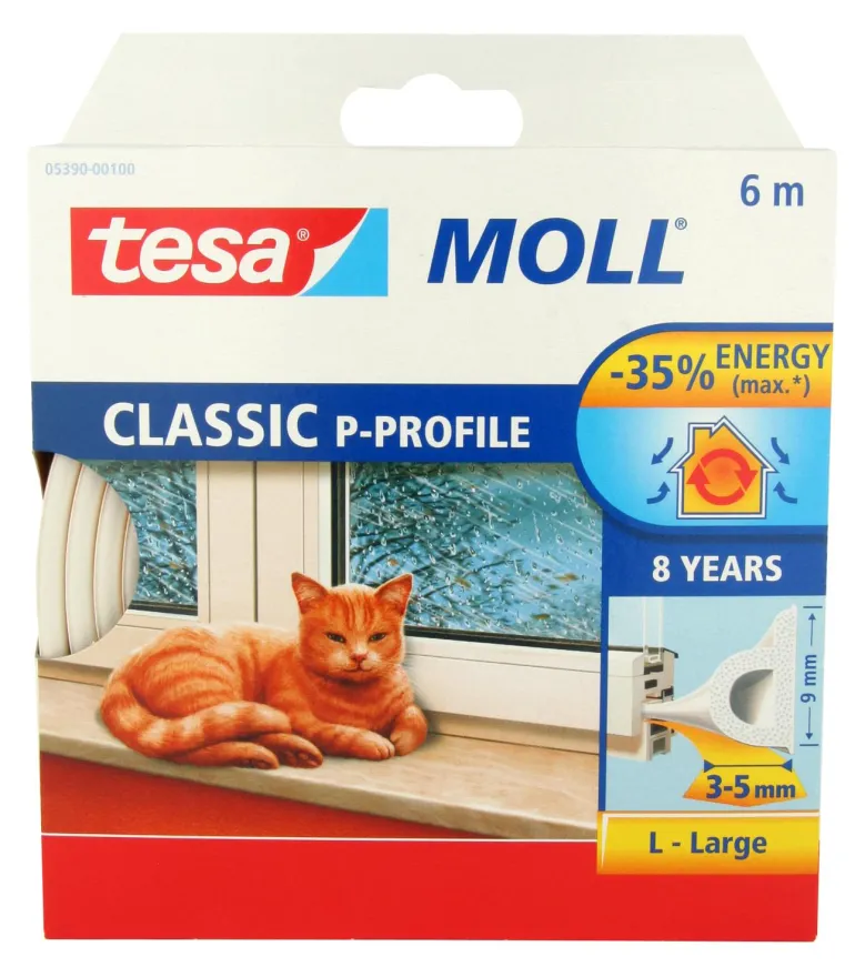 Tesa P-list 55703-00100-00 on P-profiilinen itsekiinnittyvä vedolta suojaava tiivistenauha. Ajan mittaan ikkunankehyksiin syntyy välystä, eivätkä ne enää estä luotettavasti kylmän ilman pääsyä sisään, kun tuulenpuuskat osuvat niihin. Tesa P-list 55703-00100-00 on itsekiinnittyvä tiivistenauha, joka tiivistää erityisesti vanhoille ikkunoille tyypilliset piilevät raot. Se on tehokas, ikkunankarmiin kiinnitettävä tiiviste, joka kestää pitkään ja voi säästää energiakustannuksia jopa 35 %. Helposti kiinnitettävän, taataan toimivan vähintään 8 vuotta.