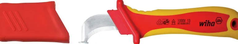 Kuorintaveitsi, jossa liukukengällä varustettu koukkuterä pyöreille kaapeleille. Kärjen rakenne estää johtimen eristyksen vaurioitumisen (terän kärki rajoittaa leikkaussyvyyttä). Mukana on kätevä suojus turvallista kuljetusta ja terän suojaamista varten.