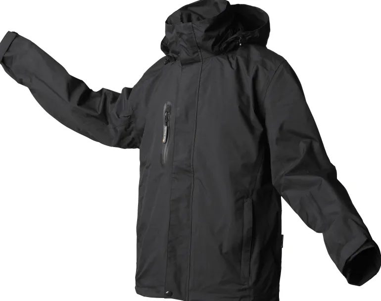 Musta tuulen- ja vedenpitävä kuoritakki, jossa on 10000 mm vesipylväs ja hengittävyys 5000g/m² sekä teipatut saumat. Parhaan käyttömukavuuden ja toimivuuden saavuttamiseksi suunnitellussa ja kehitetyssä takissa on muun muassa säädettävä irrotettava huppu.