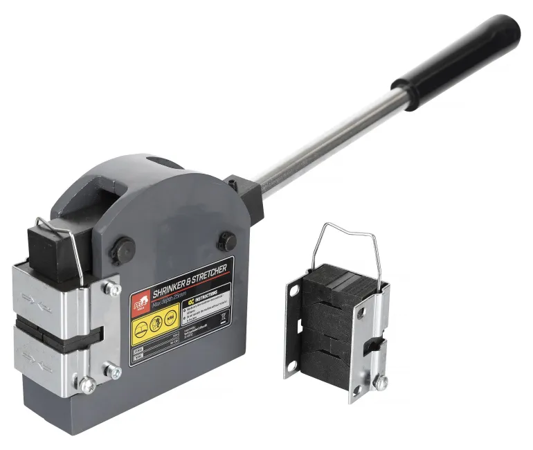 PELA 70204 on kutistus- ja venytyslaite metallin kutistamiseen ja venytykseen. Harrastuskäyttöön. Voi tehdä kaaria, joiden vähimmäissäde on 3″. Kutistus tekee ulkokaaria ja venytys sisäkaaria. Jalusta on saatavana lisävarusteena, tuotenumero 70208.