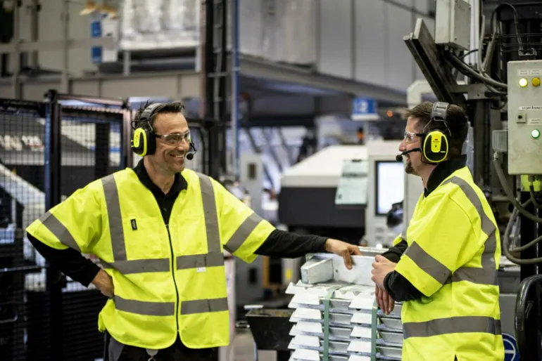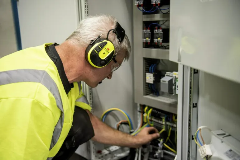 Kuulosuojaimen ulkopuolella sijaitsevat mikrofonit pyydystävät ääniä ympäristöstä. Ne analysoidaan elektronisesti, ja kovat äänet vaimennetaan automaattisesti enintään 82 desibeliin. Puhe eritellään kovista äänistä, ja voit kuunnella lähellä olevien työtovereiden puhetta ilman kuulovaurioita.