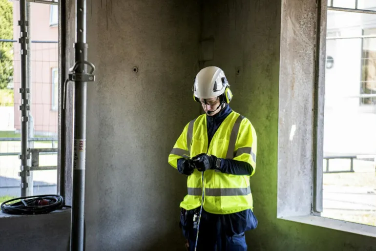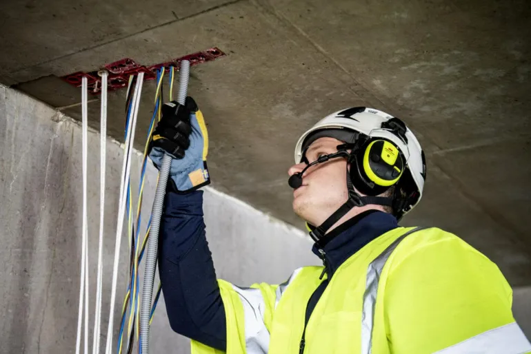 Kuulosuojaimen ulkopuolella sijaitsevat mikrofonit pyydystävät ääniä ympäristöstä. Ne analysoidaan elektronisesti, ja kovat äänet vaimennetaan automaattisesti enintään 82 desibeliin. Puhe eritellään kovista äänistä, ja voit kuunnella lähellä olevien työtovereiden puhetta ilman kuulovaurioita.