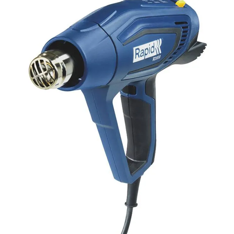 Kuumailmapistooli R2000. R2000 on tehokas ja monipuolinen kuumailmapistooli. 2000 watin käyttöteho ja kolmiportainen lämpötila-alue (10, 250, 500 °C – 60-350-600 °C) soveltuvat monentyyppisiin käyttökohteisiin, esimerkiksi maalin kaapimiseen ja muovin kutistamiseen. Jännite VAC 220-240V / 50Hz.