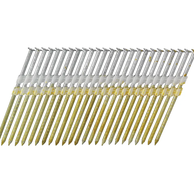 Kuumasinkitty naula. Läpimitta 2,8 mm ja naulan pituus 65 mm, 21°:n runkonaulaimelle. Määrä: 500 kpl