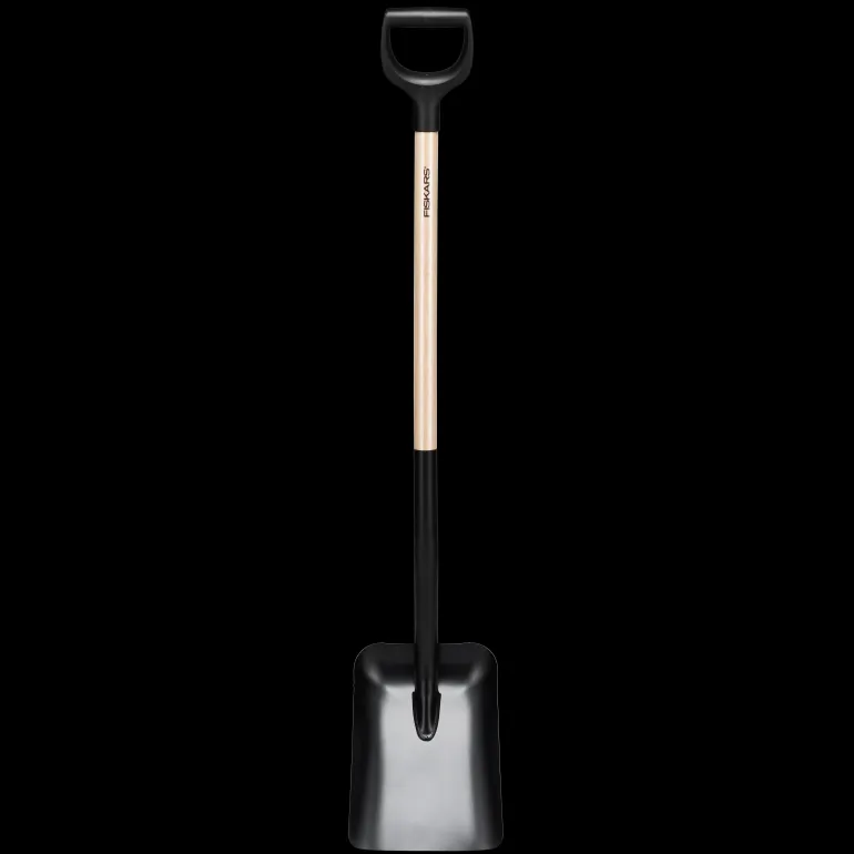 Fiskars Solid™ -kuuppalapio, jonka leveä terä soveltuu esimerkiksi mullan, hiekan ja soran kaltaisten materiaalien tehokkaaseen lapiointiin. Sen teräksinen pää on hitsattu FSC®-sertifioituun (FSC C108780) puuvarteen kestävyyden lisäämiseksi. D-muotoinen kahva tarjoaa saumattoman otteen, hanskoilla tai ilman.