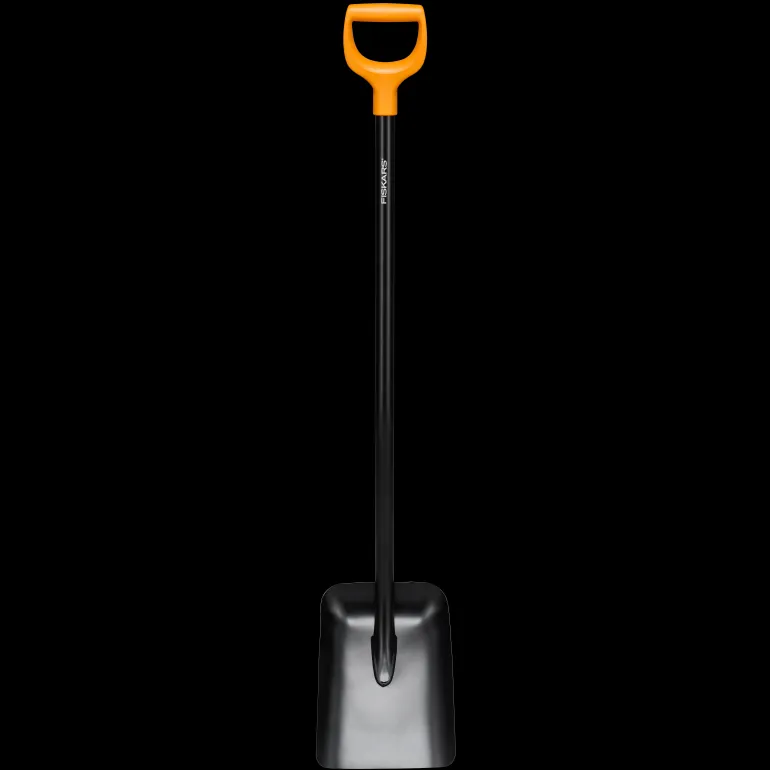 Fiskars Solid™ -kuuppalapio, jonka leveä terä soveltuu esimerkiksi mullan, hiekan ja soran kaltaisten materiaalien lapiointiin. Pyöristetty teräsvarsi ja terän ja varren hitsatut liitokset takaavat paremman kestävyyden. D-muotoinen kahva sopii kaikenkokoisille käsille, hanskoilla tai ilman.