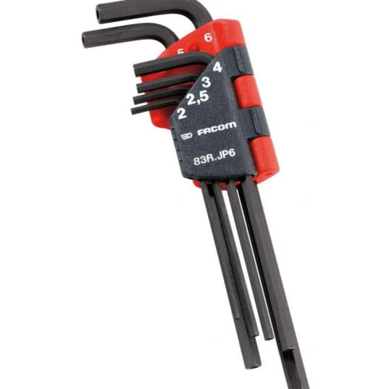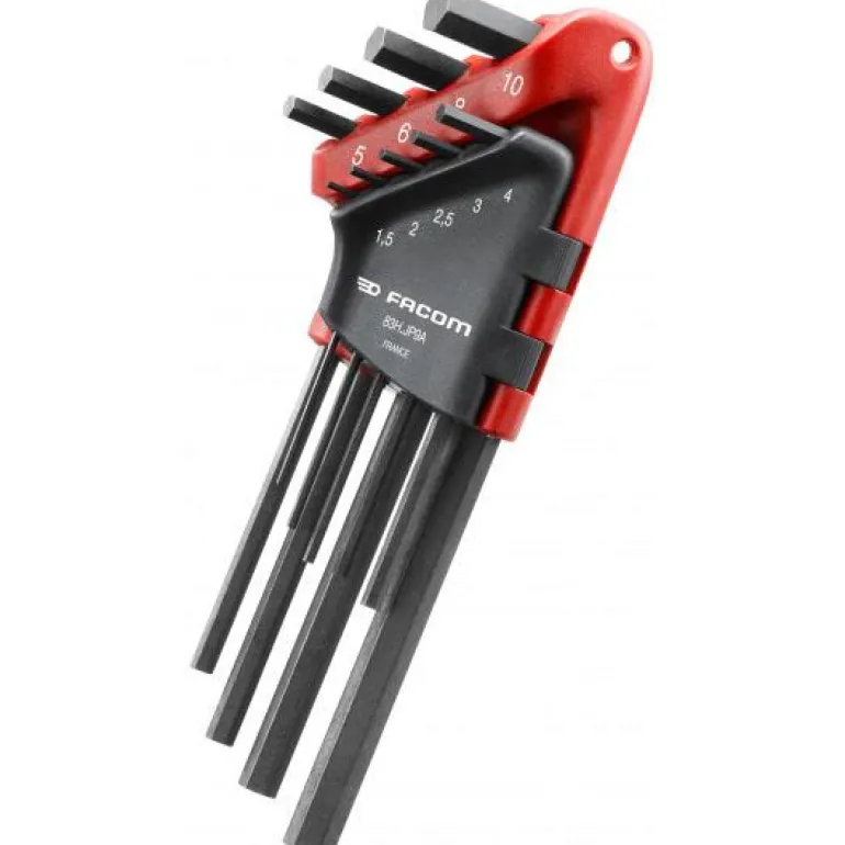 Facom 83H.JL10 on kuusiokoloavainsarja, jossa on 10 erikokoista pitkää avainta. Pakattu koteloon, josta tarvittava koko on helppo valita.