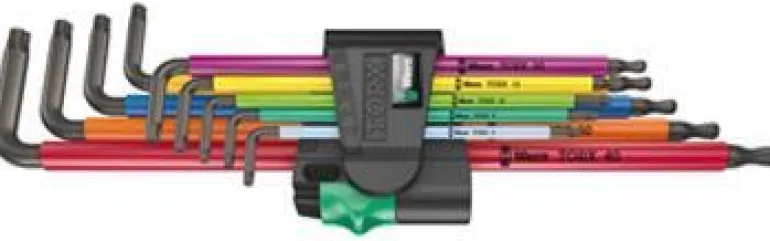 9 kpl pakkaus muovipäällysteisiä kuusiokoloavaimia torx-ruuveille. Erityispitkä varsi ja pyöristetty pää. Mukana käytännöllinen pidike.