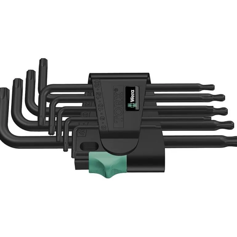 9 kpl pakkaus mustaksi oksidoituja kuusiokoloavaimia torx-ruuveille. Mukana käytännöllinen pidike.