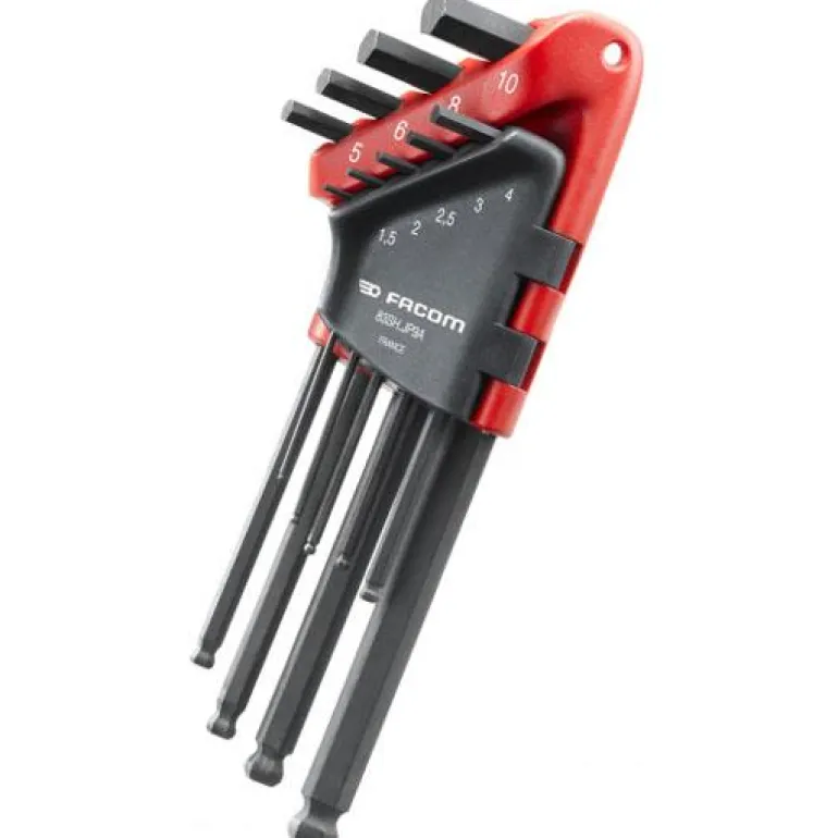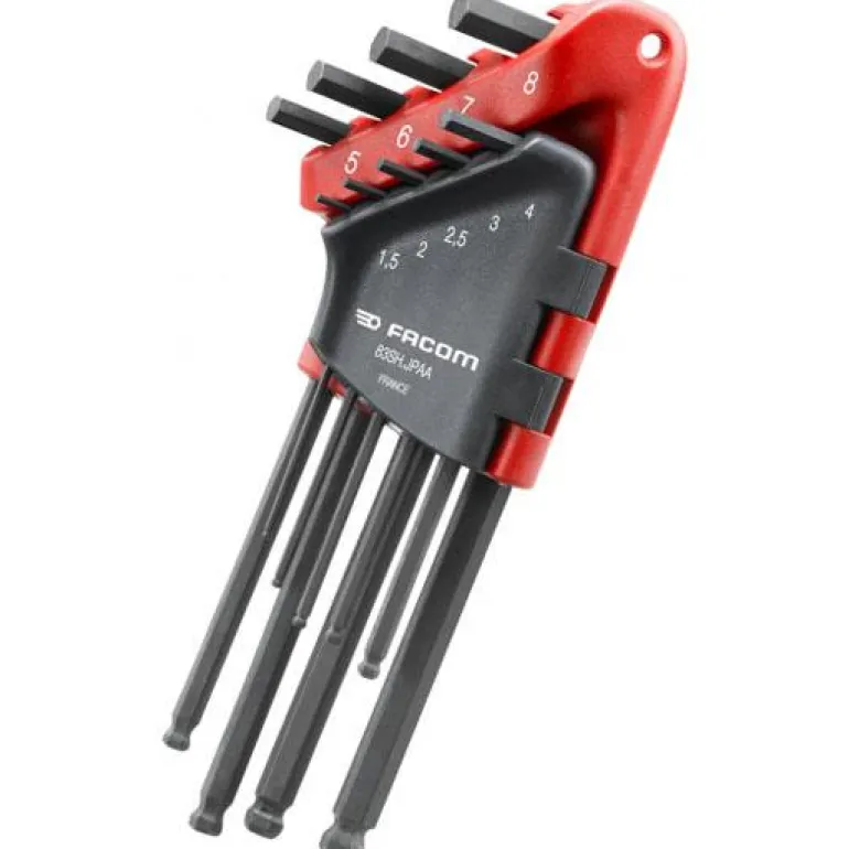 Facom 83SH.JP9A on kuusiokoloavainsarja, jossa on 9 erikokoista pitkää pallopäistä avainta. Pakattu kompaktiin koteloon, josta tarvittava koko on helppo valita.