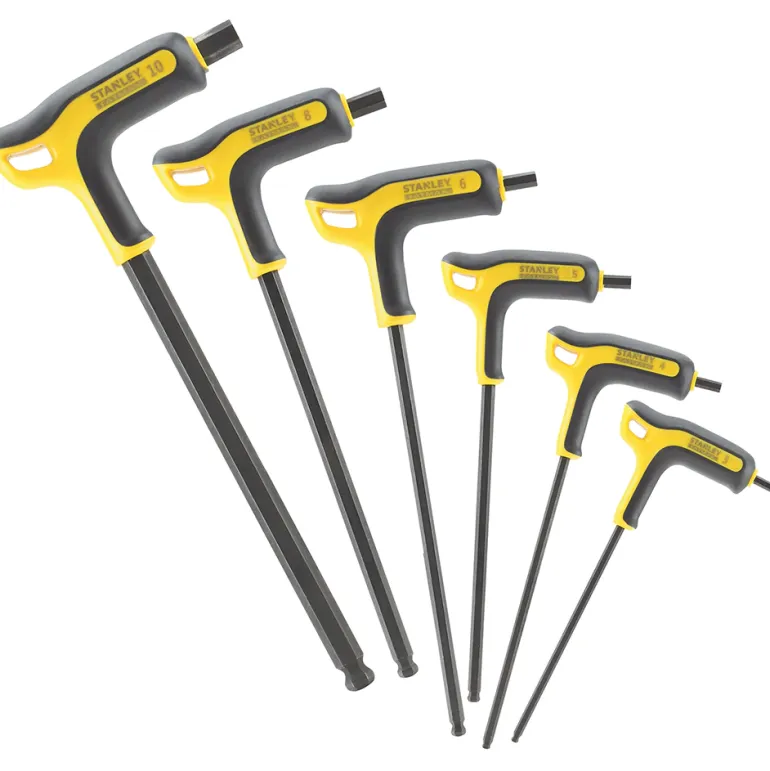 6-osainen kuusiokoloavainsarja ergonomisella P-kahvalla maksimaalisen mukavuuden takaamiseksi. Musta oksidoitu pinnoite parantaa korroosionkestävyyttä, ihanteellinen kuusiokoloruuvien kiinnittämiseen.