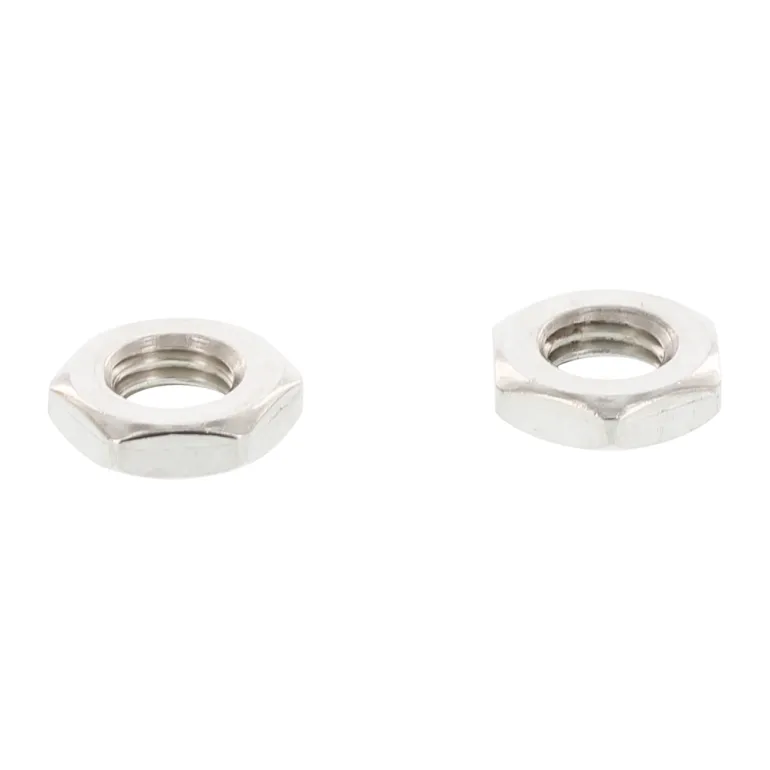 Vasenkierteinen kuusiomutteri, M-kierre, matala malli. Valmistettu ruostumattomasta A2-teräksestä.