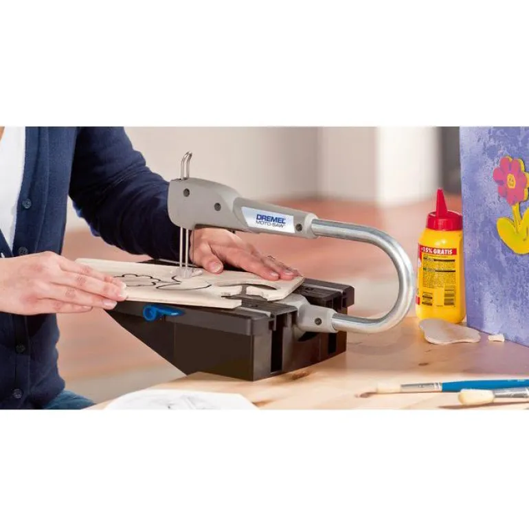 Dremel Moto-Saw MS20-1/5 on kompakti ja helppokäyttöinen kuviosaha eri materiaalien yksityiskohtaiseen leikkaamiseen. Laajan sahanterävalikoiman ansiosta Dremel Moto-Saw sahaa helposti monia eri materiaaleja. Irrotettavan lehtisahan ansiosta sitä voi käyttää sekä telineeseen kiinnitettynä että käsivaraisesti. Helppokäyttöinen kuviosaha on helppo säilyttää ja asentaa.