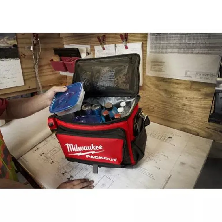 Milwaukee 4932471132 on iskunkestävä kylmälaukku, jonka polymeeripohja suojaa sisältöä vedeltä ja lialta sekä mahdollistaa laukun säilyttämisen pystyasennossa. Olkaremmi, vuoraus soveltuu elintarvikkeiden säilytykseen. Lisäeristys pitää viileänä jopa 24 tuntia.