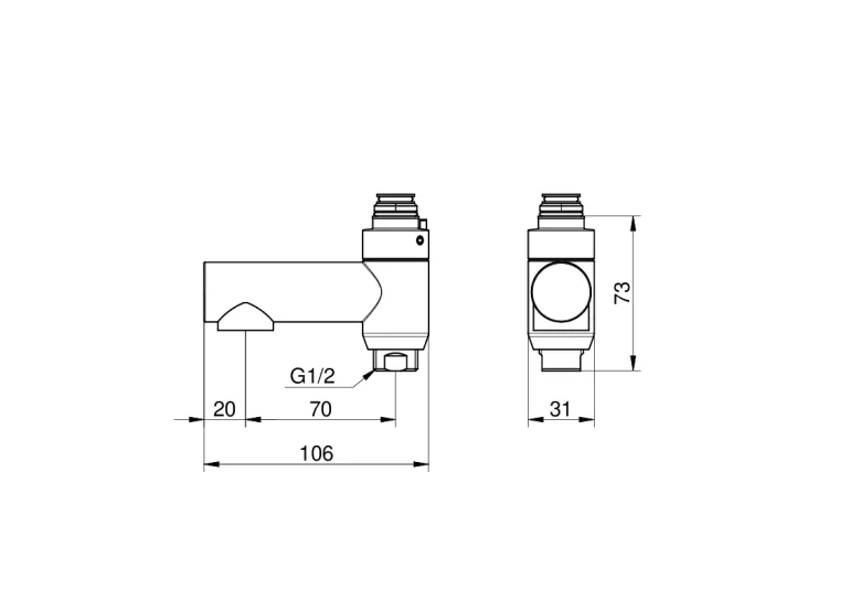 Kylpyammehanan vaihdinjuoksuputki, jossa vaihdintoiminto kääntämällä juoksuputkea. Ammehanalle Nautic.