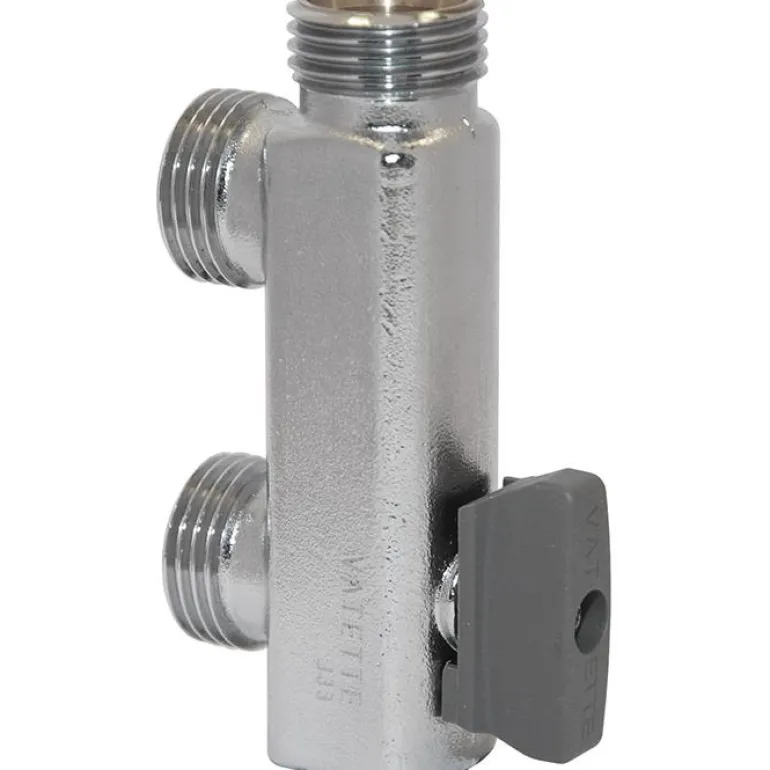 3-putkinen 40 c/c kylpyhuoneen jakotukki kuulaventtiilillä, liitettäväksi Vatette-peitelaippoihin tai seinän läpivientijärjestelmään kylpyhuoneen pesualtaan alle. Jakotukkia voidaan käyttää kuparista, ruostumattomasta teräksestä ja sähkösinkitystä teräksestä valmistettujen putkien ja PEX-putkien kanssa, ja se tarjoaa erillisen sulun vedelle kylpyhuoneessa.