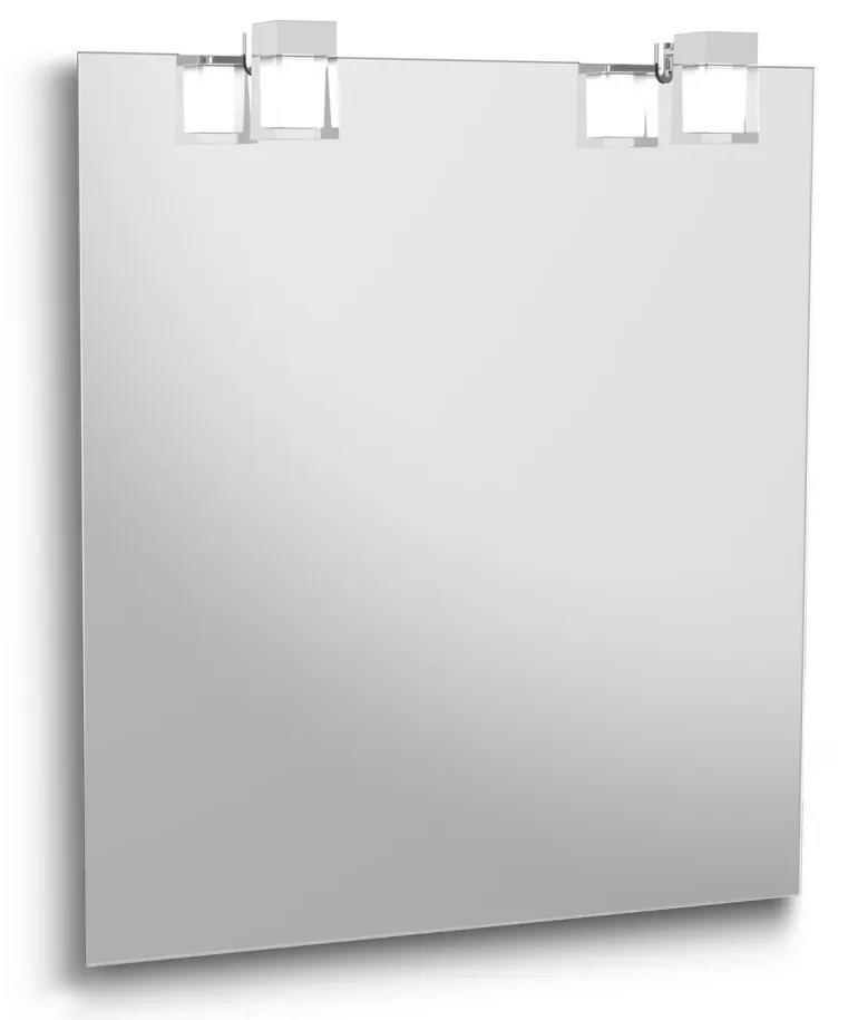 60×65 cm kylpyhuoneen peili kiinteään seinäasennukseen. Varustettu LED-valaistuksella, suojausluokka IP44.