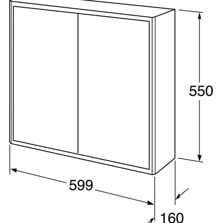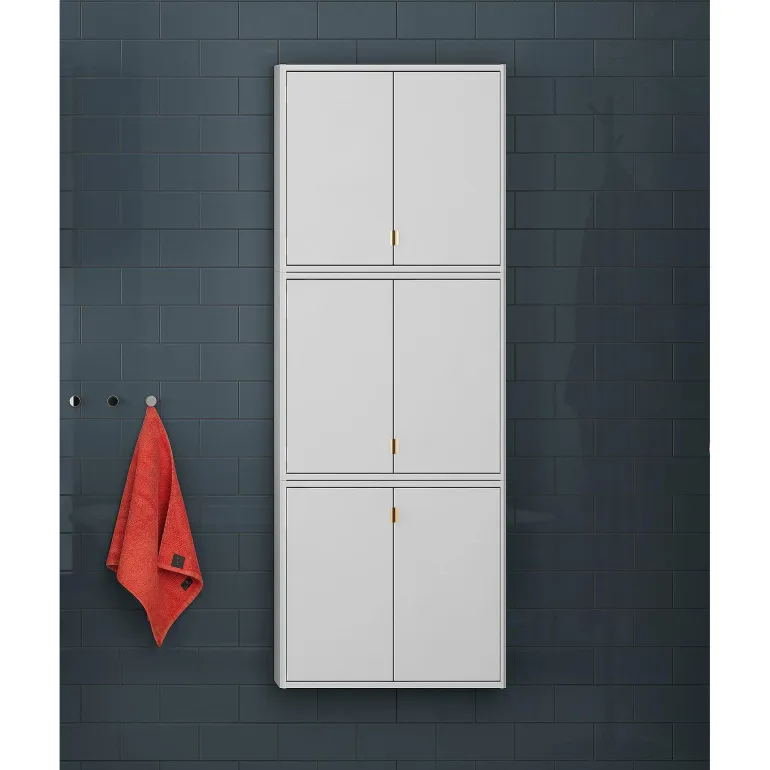 Kylpyhuonekaappi 60 x 16 cm, voidaan yhdistää Graphic-seinäkaappiin ja korkeaan kaappimoduuliin. 2 siirrettävää lasihyllyä ja pehmeästi sulkeutuvat ovet.
