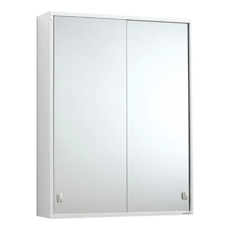 Kylpyhuonekaappi, jossa kaksi kahvallista liukuovea peililasista. Kolme irrotettavaa hyllyä maalattua peltiä. Toimitetaan valmiiksi koottuna.