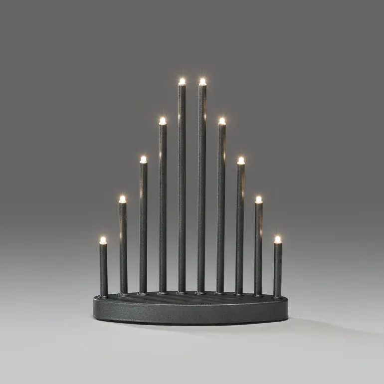 Konstsmide 2401-370TR on sähkökynttelikkö 10 LED-valopisteellä (kynttelikön väri antrasiitti). Metallia, 3V/IP20.