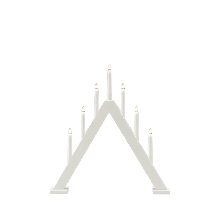 Konstsmide 3931-205 on puinen sähkökynttelikkö 7 kynttilällä. Valkoinen (matta). Kytkimellä, 230 V / IP20.