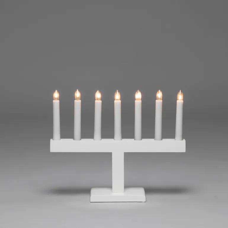 Konstsmide 3596-210 on puinen sähkökynttelikkö 7 kynttilällä. Valkoinen, kytkimellä. 230 V/IP20.