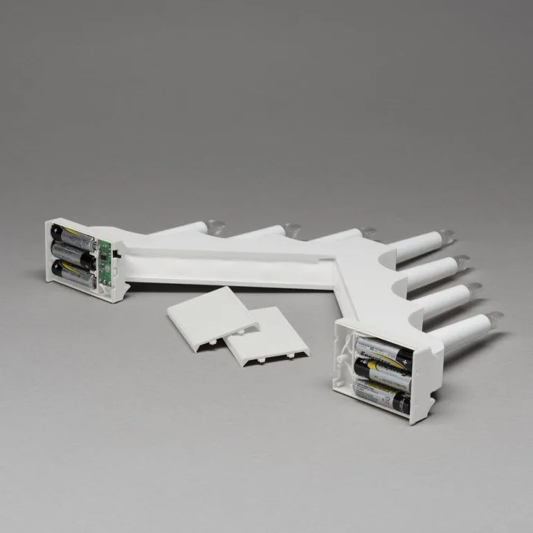 Sähkökynttelikkö mattalakattua puuta, joka toimii 6 x AA-paristolla ja siinä on 6 tunnin ajastin. Sähkökynttelikön kokonaiskorkeus on 28 cm ja se on helppo sijoittaa paikkoihin, joissa sähkörasia on hankalasti tavoiteltavissa. Valolähteet eivät ole vaihdettavissa.