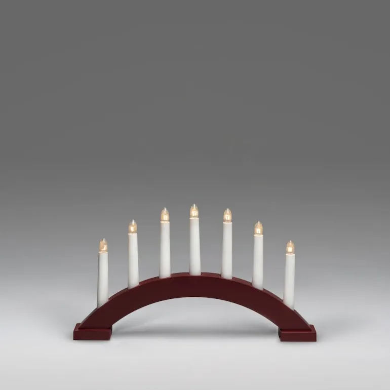Konstsmide 3972-520 on tummanpunainen puinen sähkökynttelikkö, jossa on 7 valopistettä. Sähkökynttelikön valovirta on 8 luumenia, ja se on varustettu valkoisella 170 cm:n pituisella johdolla, jossa on kytkin.