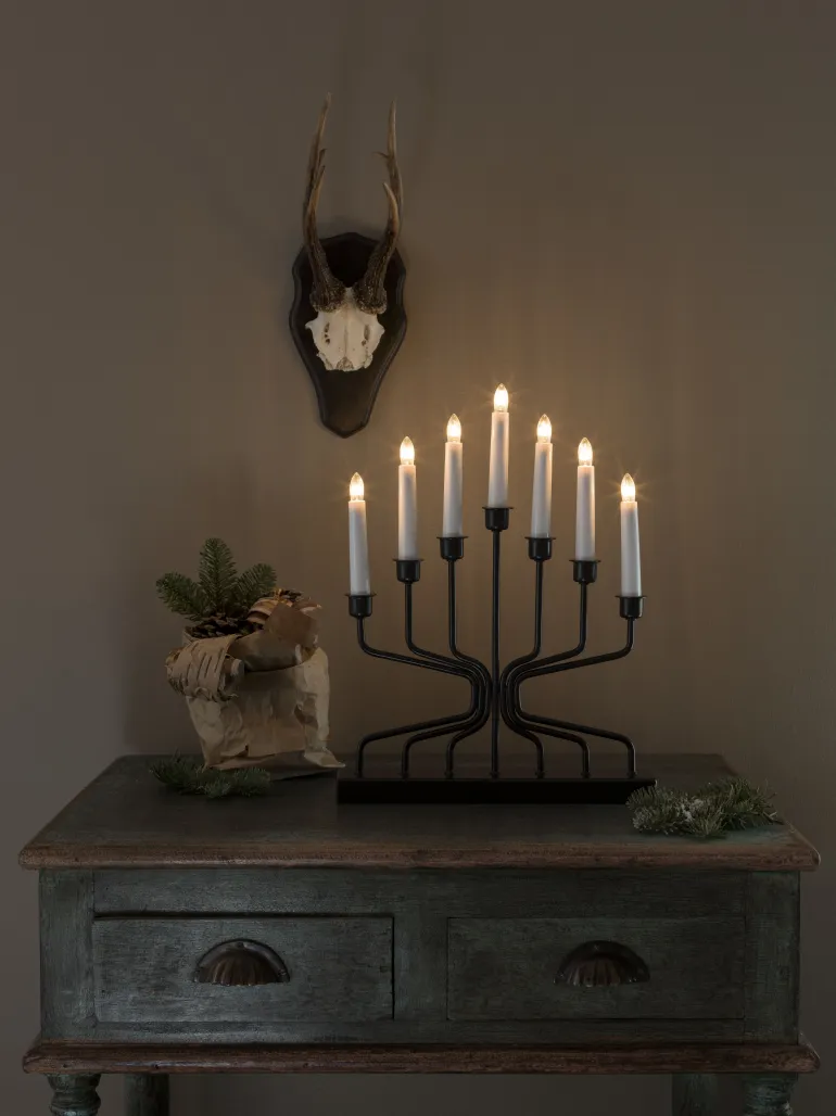 Konstsmide 3527-710TR on sähkökynttelikkö 7 kynttilällä. Metallia (musta).