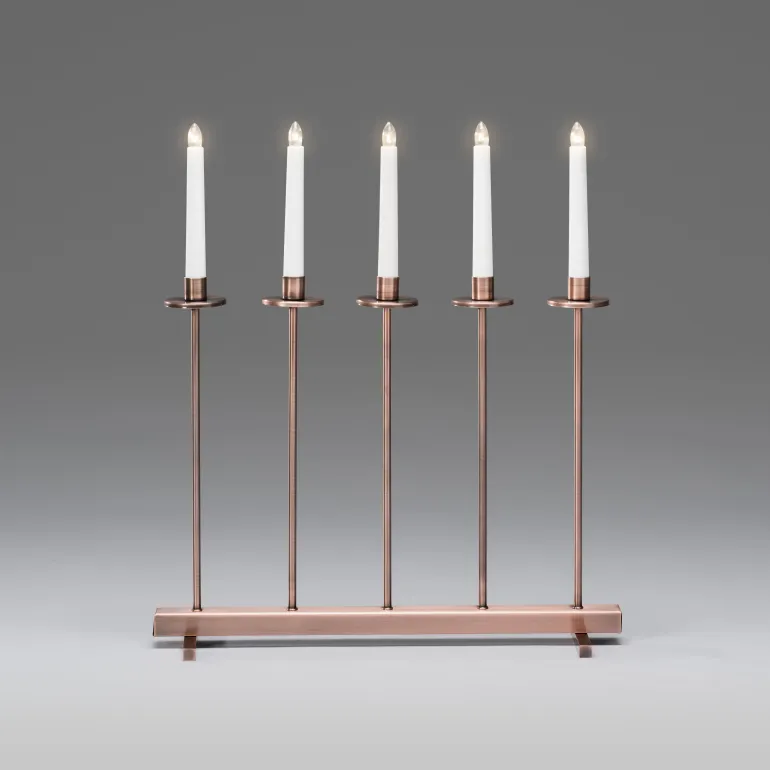 Konstsmide 3558-710TR on musta sähkökynttelikkö 5 kynttilällä. Metallia, mustalla johdolla jossa kytkin. 24 V/IP20.