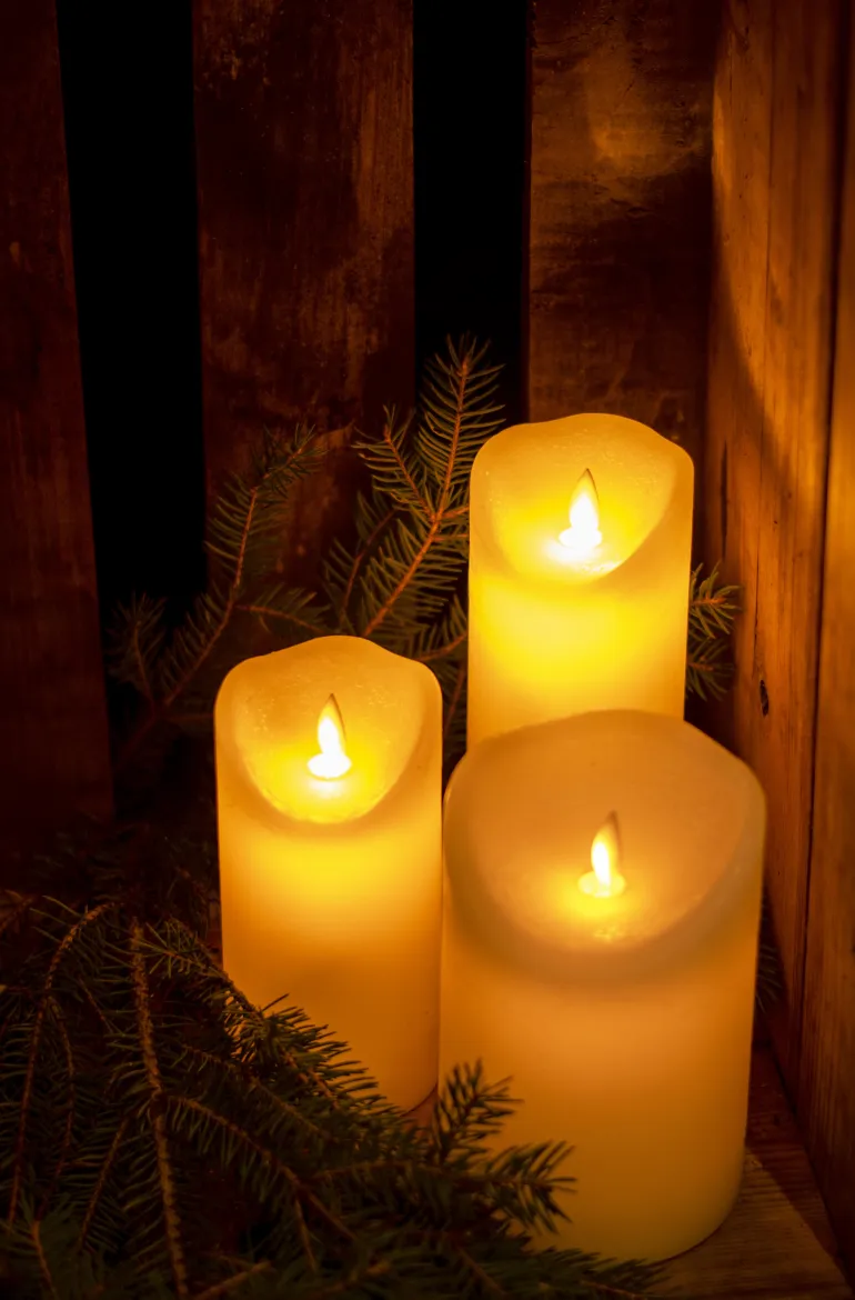 Vahakynttilä liikkuvalla LED-liekillä, joka antaa lämmintä valkoista valoa ja kauniin hehkun, joka muistuttaa elävää liekkiä. Kytke valo päälle ja pois päältä itse tai käytä ajastustoimintoa ohjataksesi syttymistä ja sammumista.