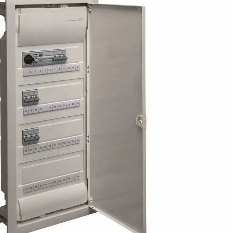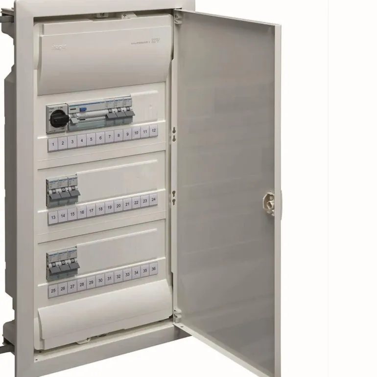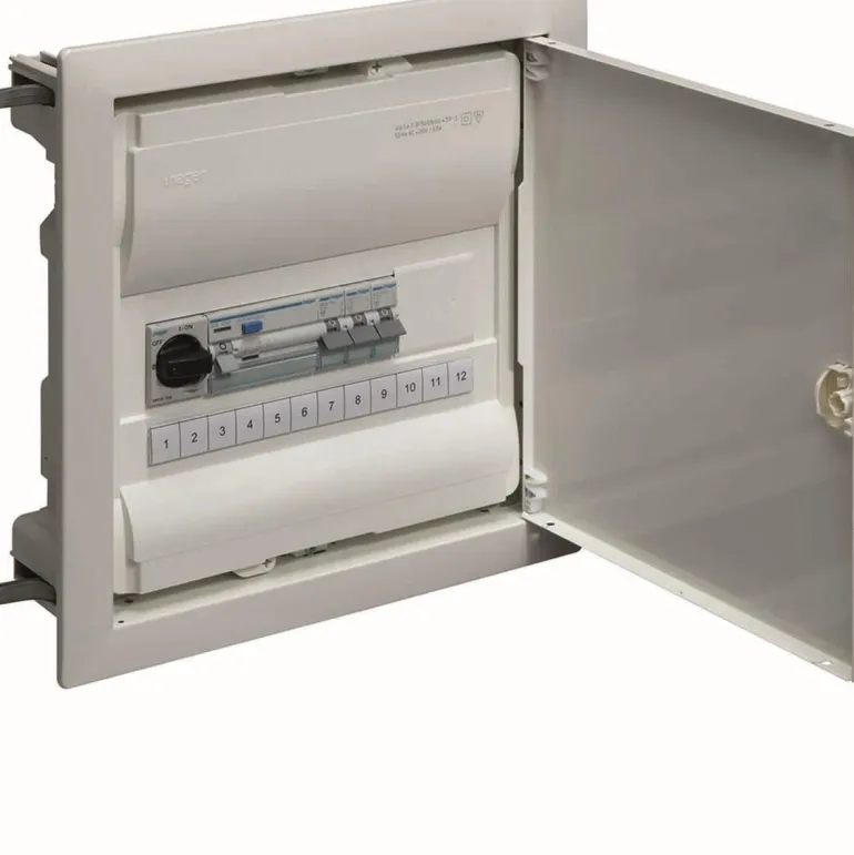 Esiasennettu 12 moduulin levyinen kytkentäkaappi. Sisältää: 1 HB 40A, 1 JFB 25A. Jokaisella rivillä on myös 3 automaattisulaketta, 10A C-käyrä, 6 kA. Kytkentäkaapeissa on ovi ja kaikki pääkatkaisimen ja kytketyn maavikavirtalaitteen väliset sisäiset johtimet sekä koko rivin mittainen vaihekisko. Nyt on helppo napsauttaa automaattisulake paikalleen ja liittää se vaihekiskoon. Kaapin varusteisiin kuuluu vaihekiskon kosketussuoja ja varalla olevien vakioaukkojen suojus.
