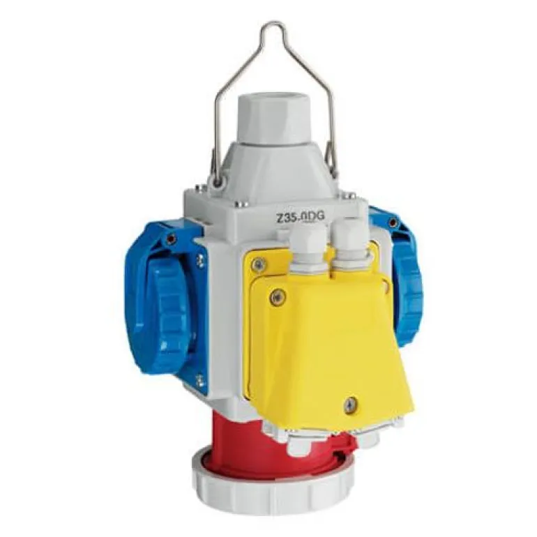 Liitinyksikkö työmaalle, Sisääntulo 16A, 400V. Ulostulo 2x16A.