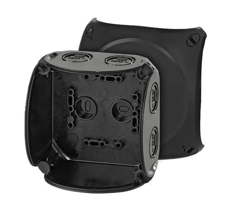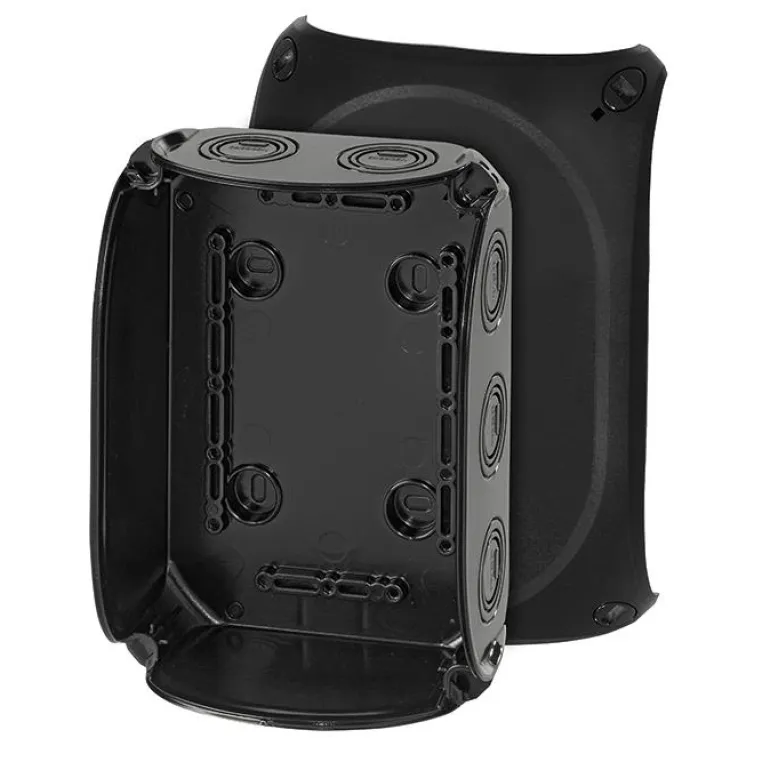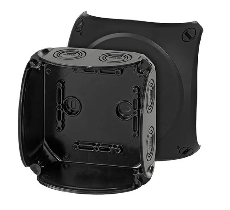 Kytkentärasia ilman liittimiä. Kannessa on pikalukitus ja näkyvä lukitusasento.