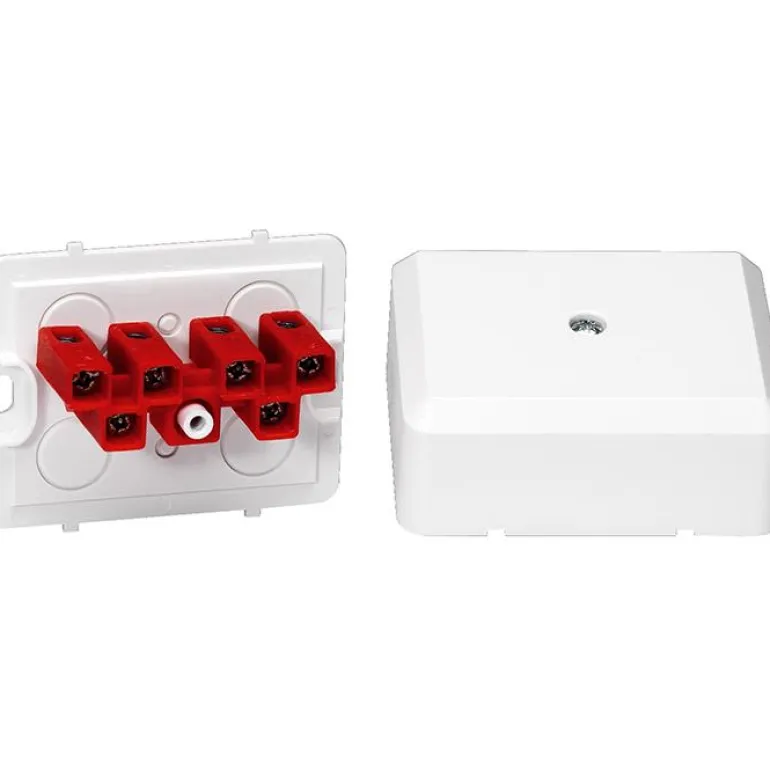 Kytkentärasia pinta-asennukseen. Ruuvikiinnitteinen kansi. Mukana 6-napainen ruuviliitos.