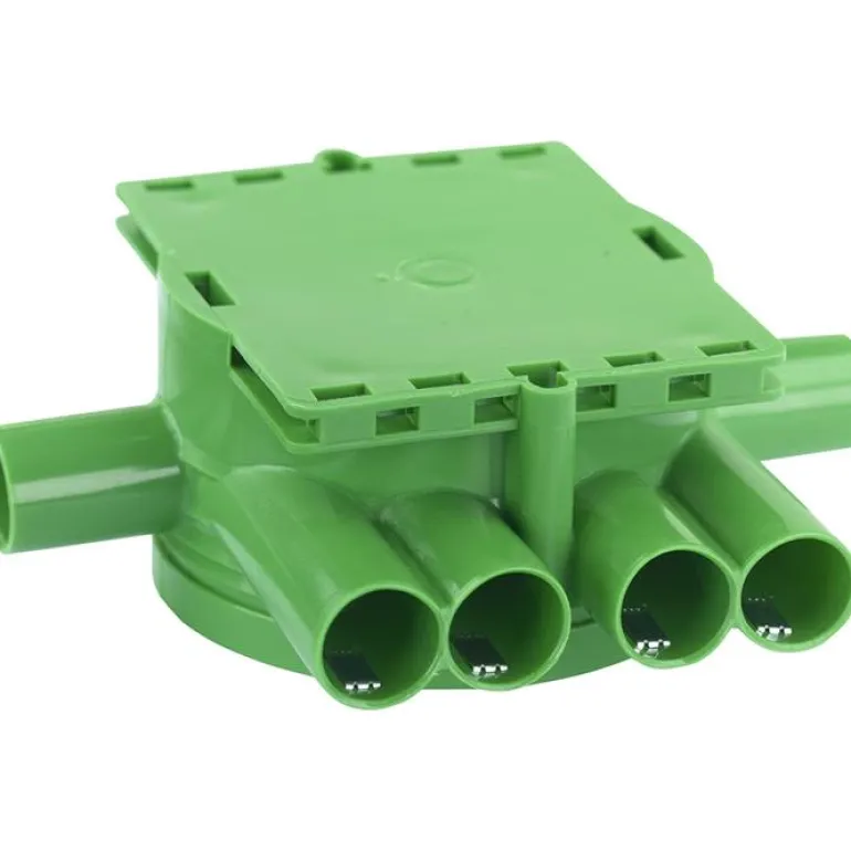 Kytkentärasia lampun pistorasian ja liesipistorasian liittämiseen. Rasiassa on 8 putkisuutinta, joista 6 Ø 16 mm putkille ja 2 Ø 20 mm putkille. Varustettu lukitusjousilla, mikä tarkoittaa, että putki kiinnittyy tukevasti.