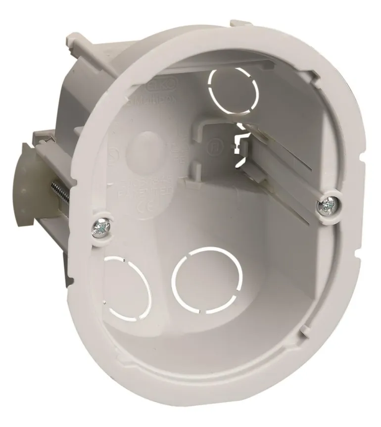 ROT-rasia laitteiden jälkiasennukseen yksin- tai kaksinkertaisesta kipsilevystä tehtyihin palkkiseiniin. Neljä sisääntuloa Ø 16 mm taipuisille putkille, kaksi ylöspäin ja kaksi alaspäin.