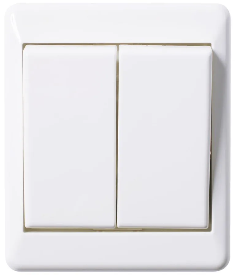 Katkaisin, jonka pohja, keinuvipu ja peitelevy on halogeenivapaata lämpömuovia. Kiinnitysruuvien väli 38mm.