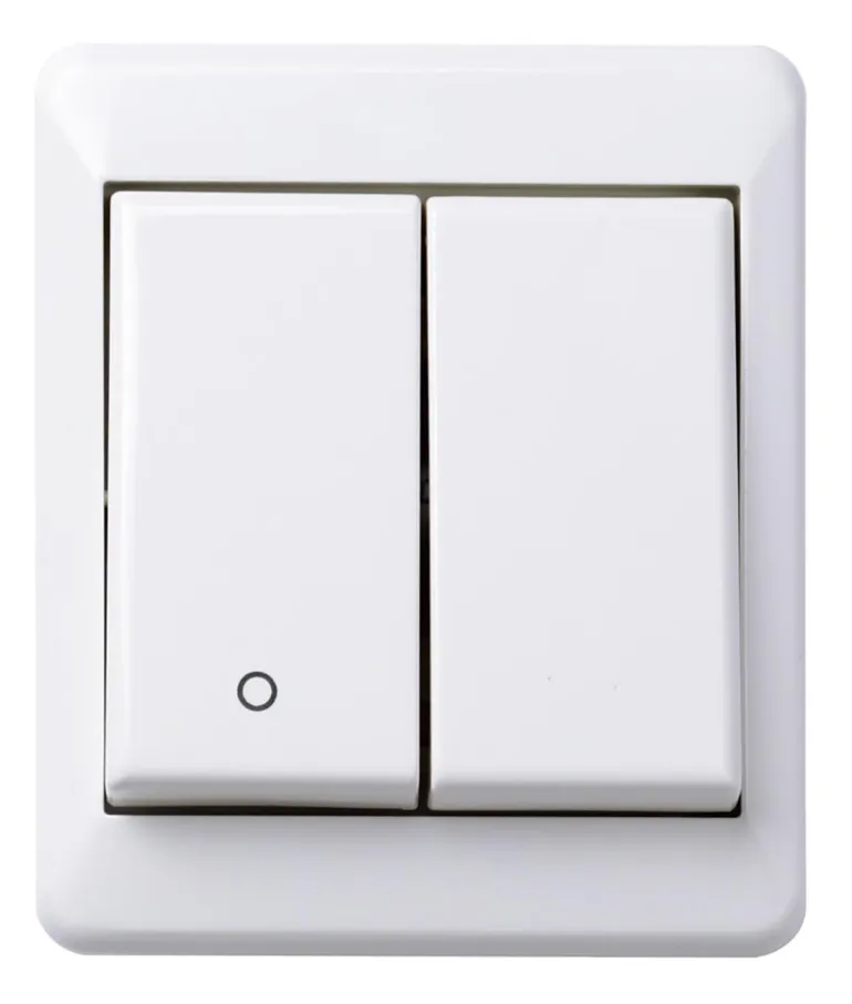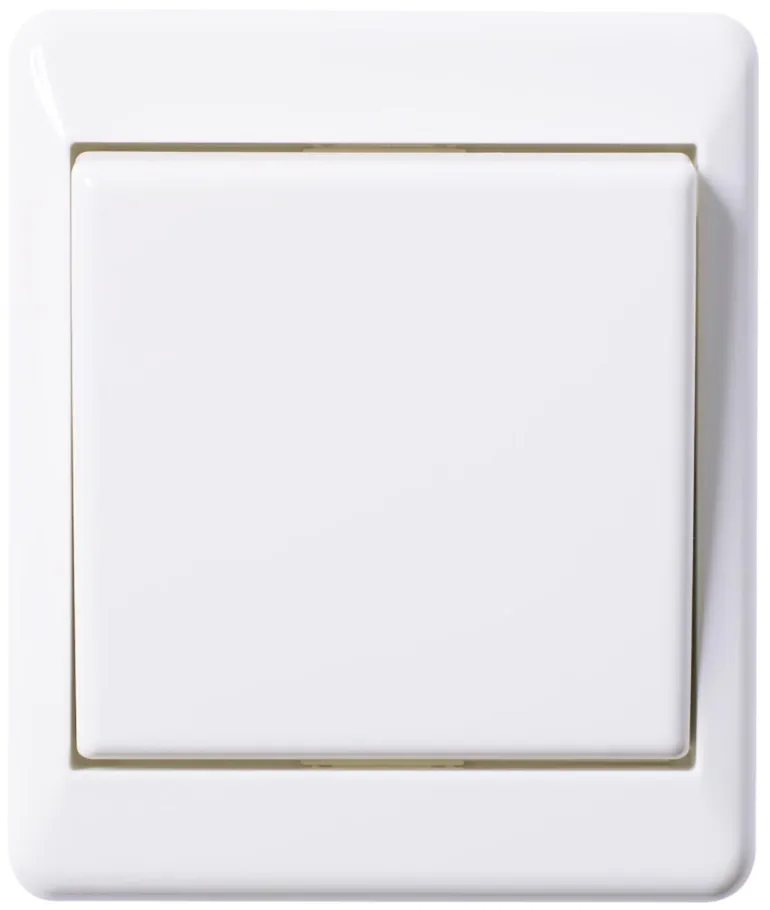 Valkoinen pinta-asennettava kytkin, jonka pohja, painikkeet ja kehys on valmistettu halogeenittomasta kestomuovista. Ruuvien kiinnitysväli 38 mm. Varustettu ruuviliitännällä.