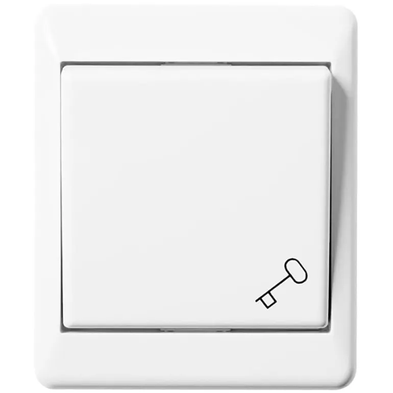 Impulssikytkin oven avaamiseen, joka on varustettu jousipalautteisella painikkeella jossa avainsymboli. Sekä sulkeutuva että avautuva toiminto ja lisäksi mahdollisuus jatkokytkentään toiseen kytkimeen.