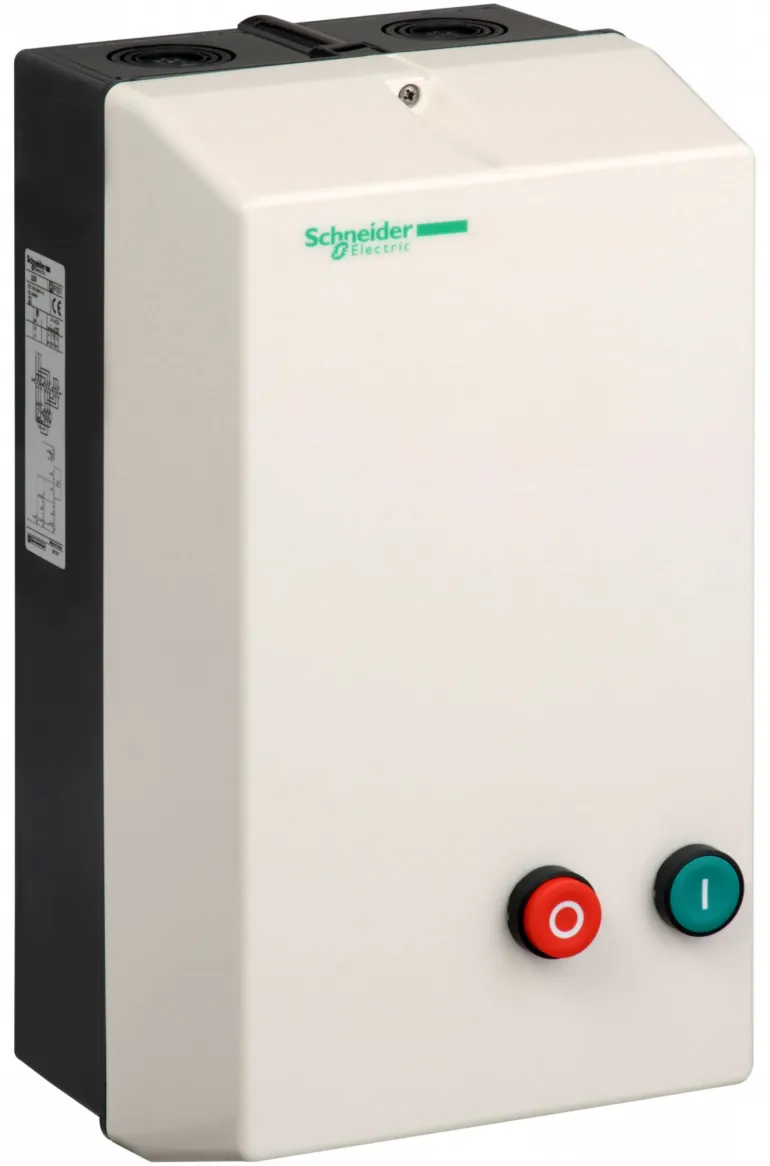 Koteloitu tähti-kolmiokytkin vakiomuodossa painikkeilla. Kytkimessä on mekaaninen lukitus ja se on muovikoteloitu, suojausluokka IP 65 suojaa hyvin iskuilta. Siinä on vihreä käynnistyspainike ja punainen pysäytys- tai nollauspainike.