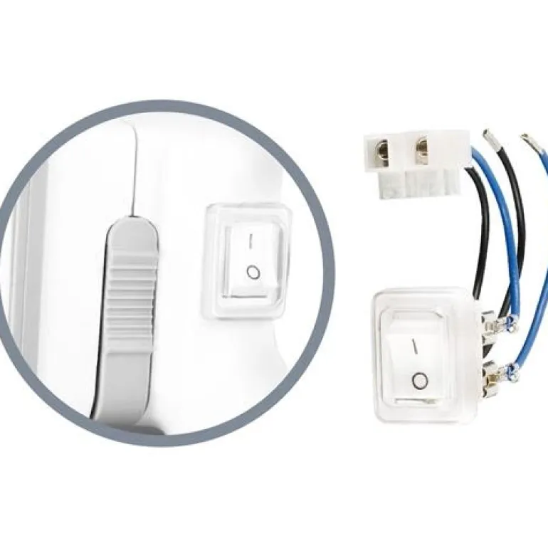 Kytkin asennettavaksi Pax Passad -märkätilapuhaltimeen 00, 30, 31 ja 60. Malli on kaikkinapainen ja väriltään valkoinen.