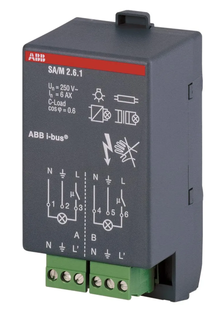 Enintään 16 A:n kuormien kytkemiseen 6 A:n jatkuvalla enimmäisvirralla Kaksikanavainen asennus huoneohjainrasiaan ja kaksi potentiaalivapaata kärkeä 230 V AC 50 Hz. Kärkien virrankesto 6 A – AC3 ja 16 A – AC1.