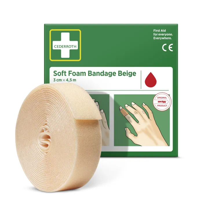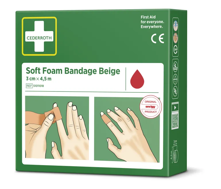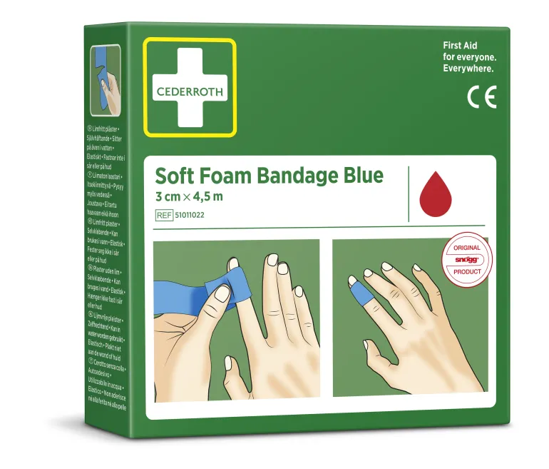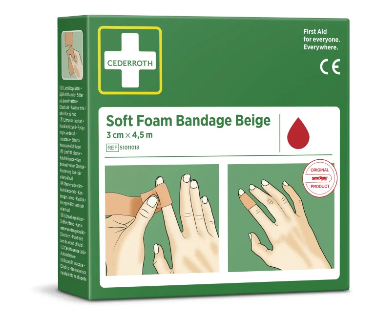 Soft Foam Bandage on itsekiinnittyvä liimaton laastari, joka ei takerru ihoon tai hiuksiin. Repäise sopiva palanen ja kiedo vammakohtaan. Cederroth Soft Foam Bandage on ihanteellinen nopeaan ja helppoon haavanhoitoon. Rasiaa voidaan käyttää annostelijana vetämällä Soft Foam laastari ulos sille varatun aukon läpi. Repäise palanen tarpeen mukaan. Lateksiton.